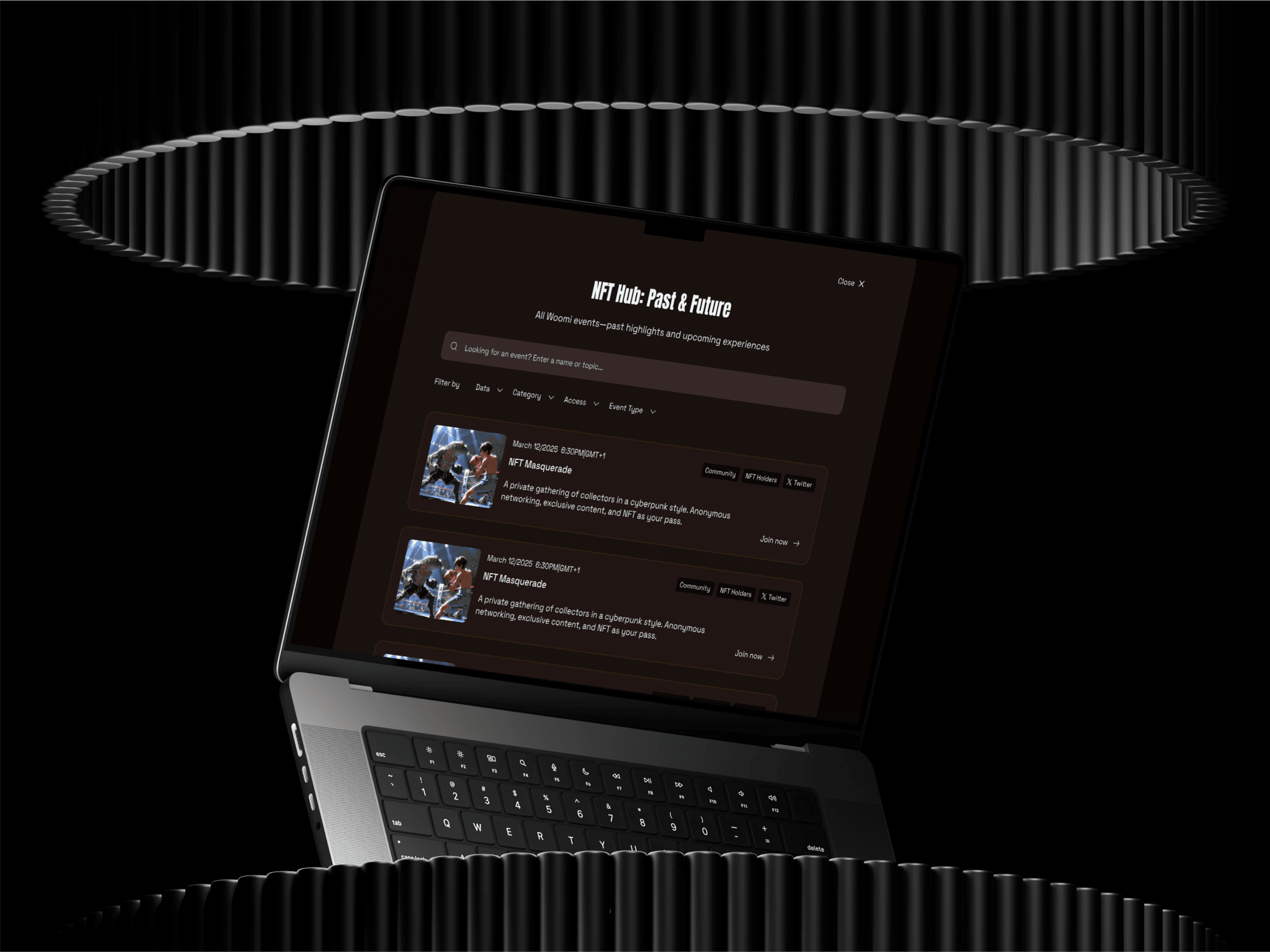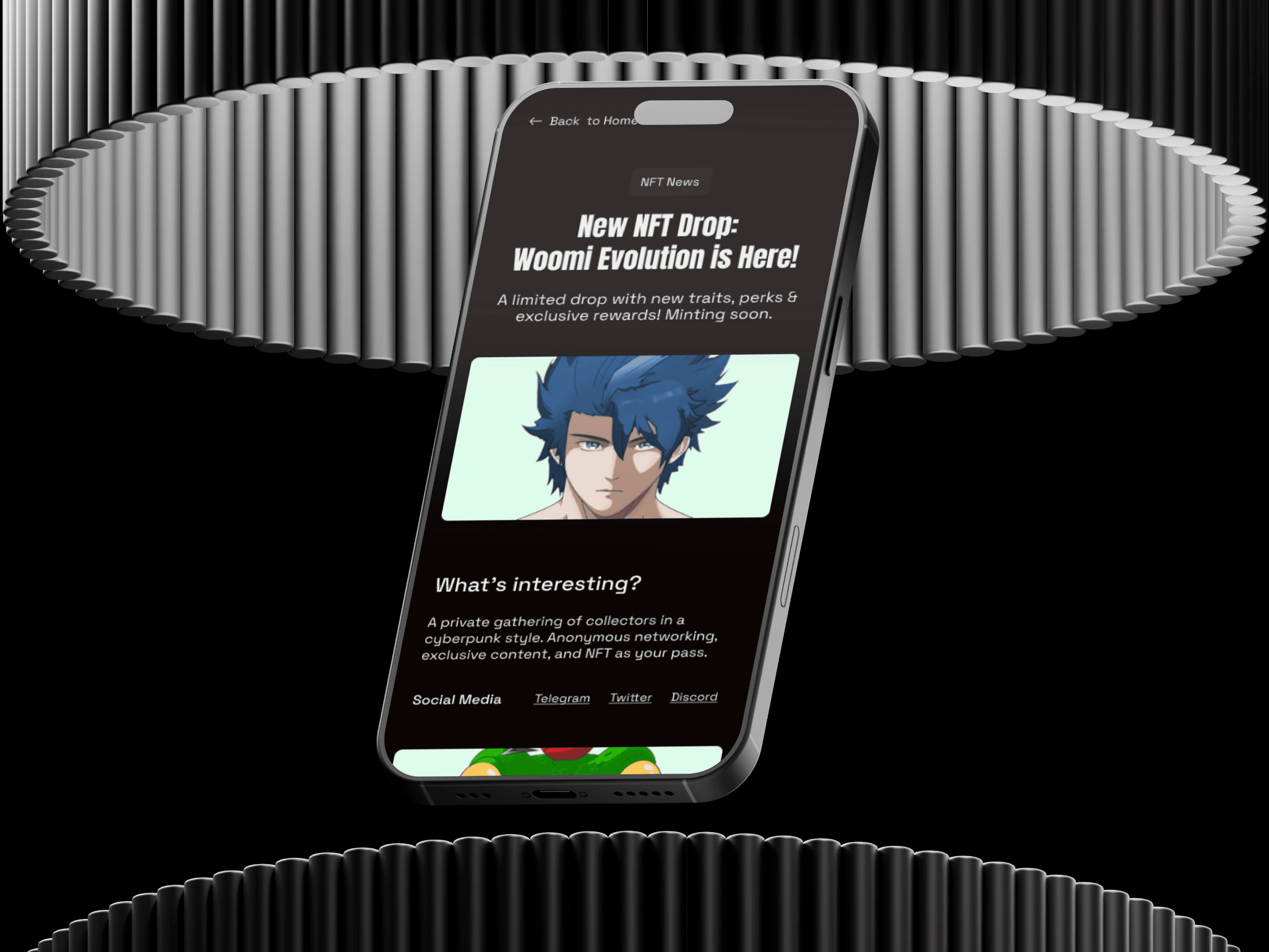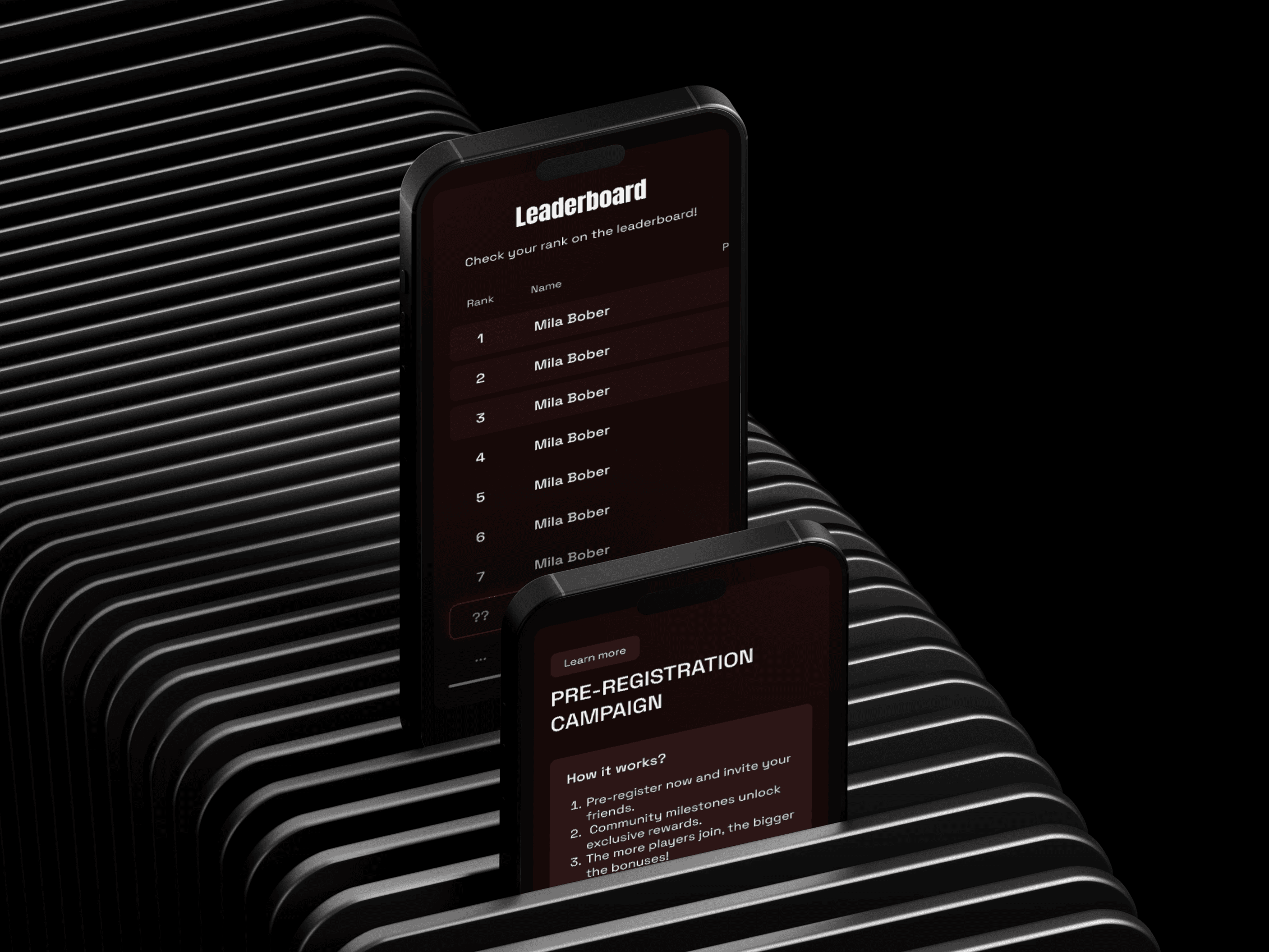 For the visual language, I drew from cyberpunk references and added subtle motion effects to support the futuristic feel. I designed scrollable content blocks, interactive event previews, and a reward-based sign-up section to keep users engaged. The entire interface was adapted for mobile use to ensure a consistent experience across devices.