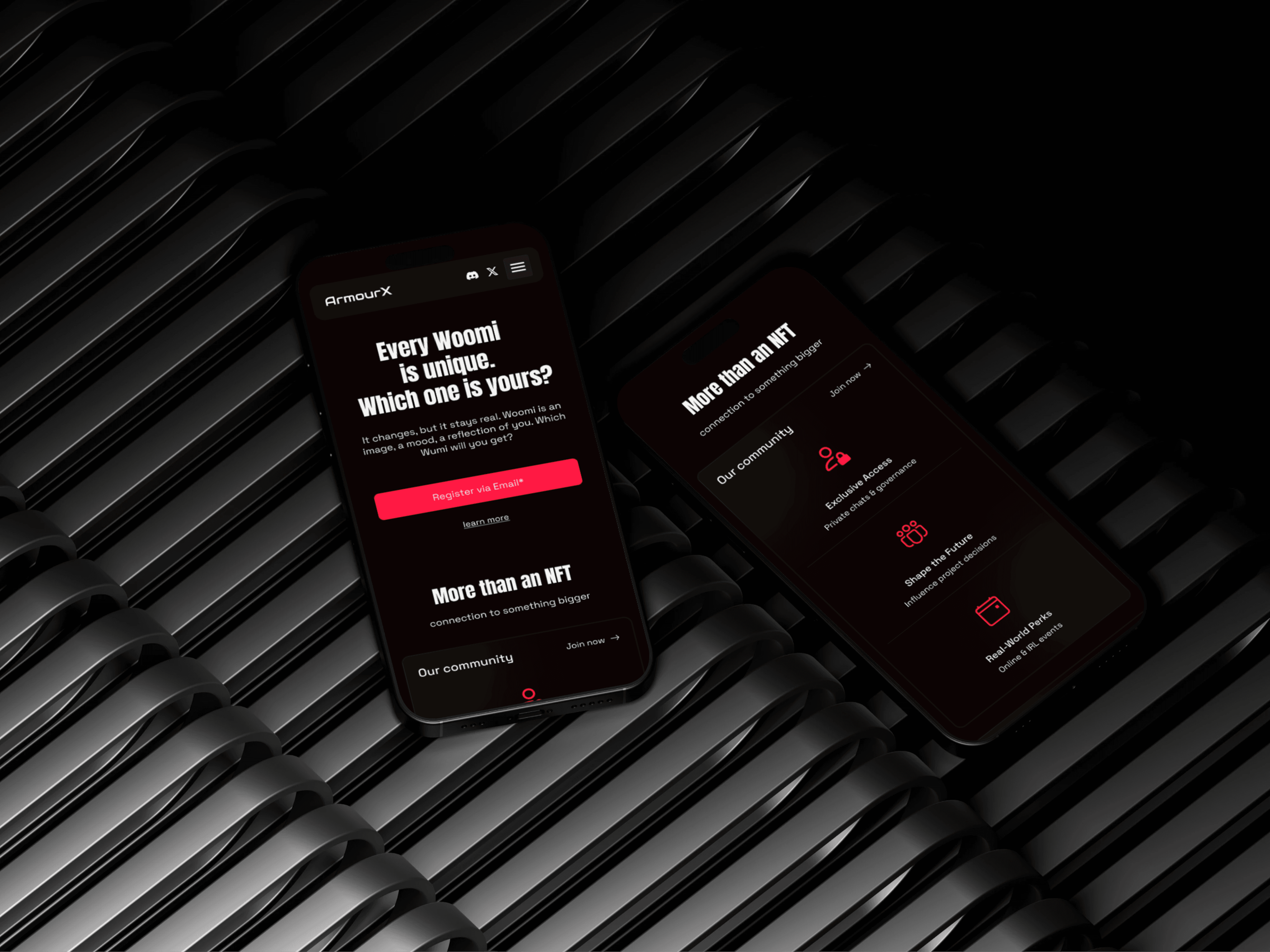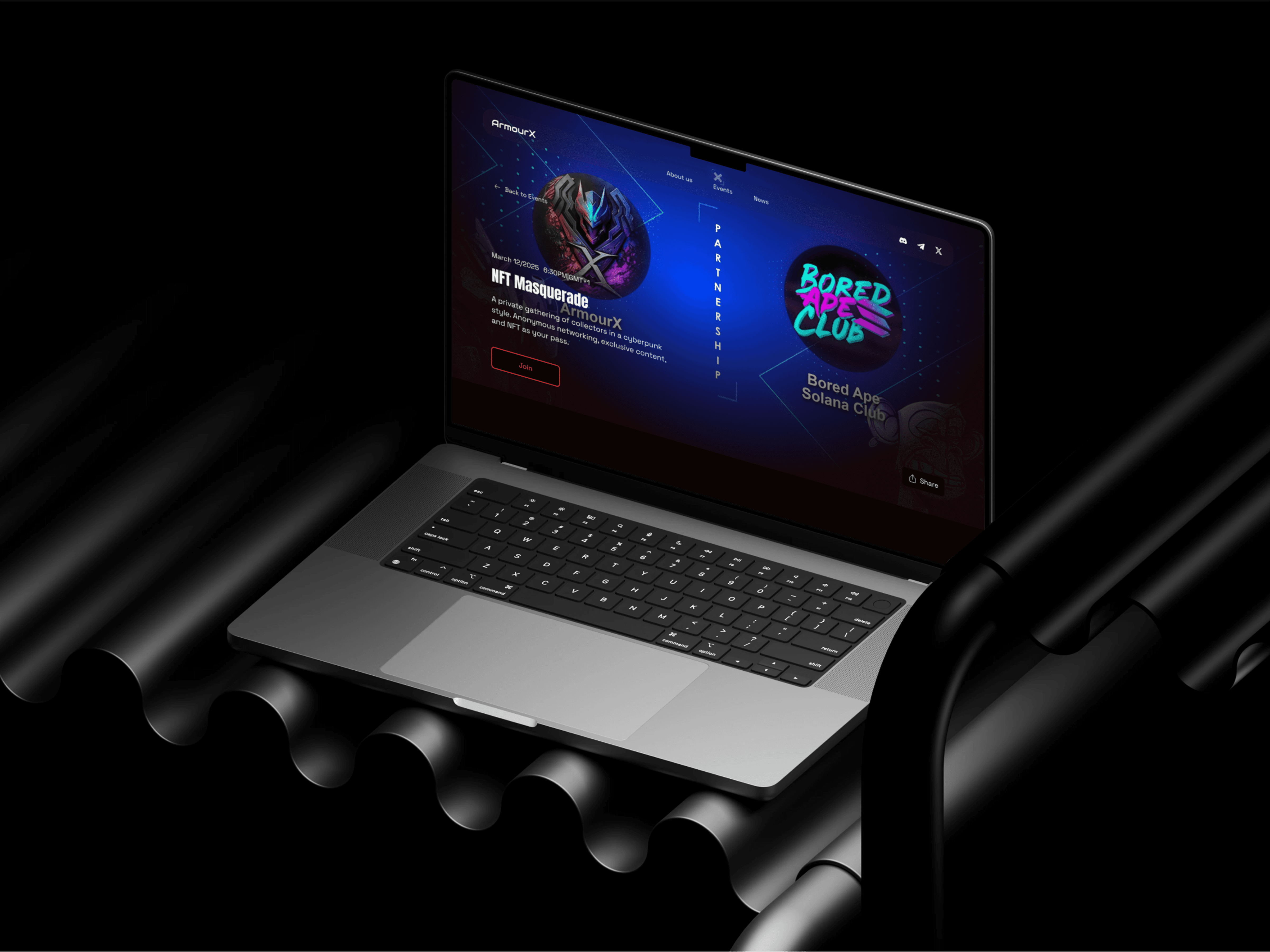 Design a platform for ArmourX — a Web3 game community with news, events, and interaction features. The main challenge was to balance futuristic game aesthetics with a clear and easy-to-navigate structure.